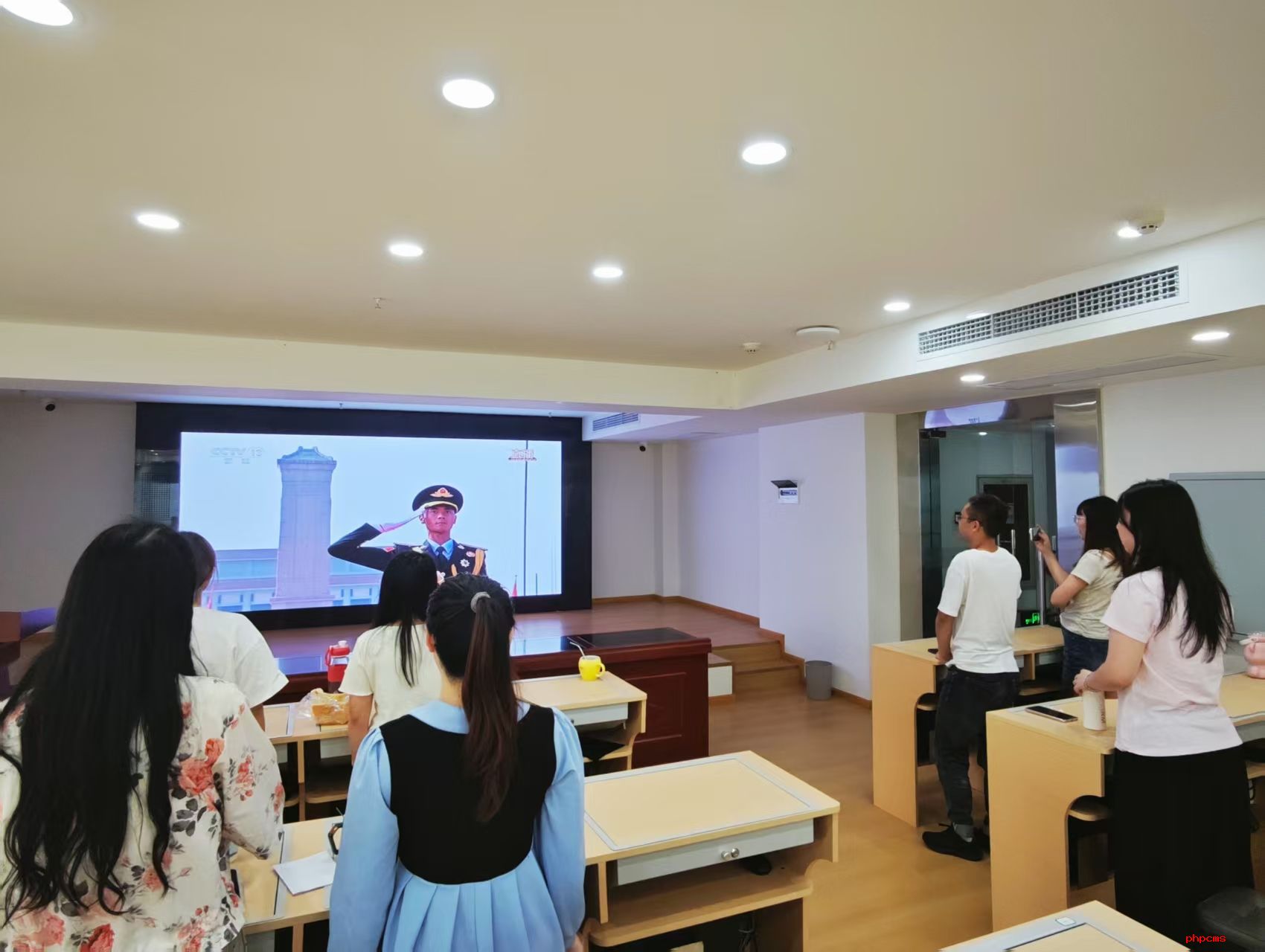 9月3日上午,北京天安门广场盛装以待,隆重举行中国人民抗日战争暨世界反法西斯战争胜利80周年大会。与此同时,在新安智教育成都校区的多功能厅内,全体工作人员和学生代表早早聚集在一起,通过大屏幕共同见证这一历史性时刻。当礼炮声响起,许多人眼眶湿润;当《义勇军进行曲》奏响时,全场起立高唱国歌,庄严的氛围弥漫整个大厅。
